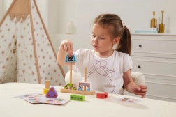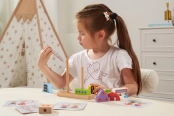 Discover a smart toy that grows with children. Wooden pieces in various shapes and colors easily slide onto the base pegs, letting kids assemble different robot characters. The included template cards guide them from simple to more complex combinations, building concentration and patience.