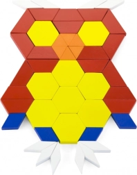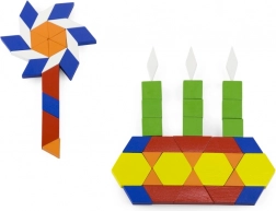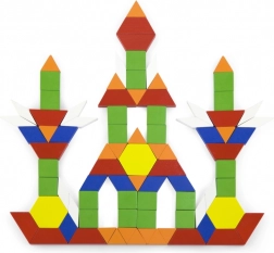 A large number of flat wooden blocks in different shapes and colors boosts imagination and spatial reasoning. Children can arrange patterns, animals, and entire pictures.