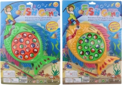 A fun family game for kids aged 3+: rotating fish open their mouths and players catch them using two rods. Develops motor skills, patience, and reflexes. Large rotating game board, powered by 2× AA (not included).