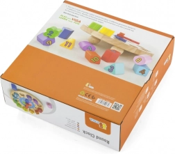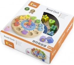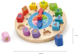 Fun and educational wooden clocks for little ones help them learn to tell time, colors, and shapes. They include 12 colorful insert pieces with numbers that develop fine motor skills, logic, and hand–eye coordination. An ideal toy for children from 24 months.