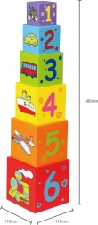 Wooden stacking blocks will provide your children with hours of fun and education. The set includes 6 blocks that can be stacked into a pyramid, developing children's coordination and spatial perception.