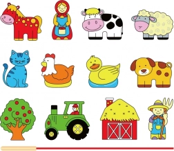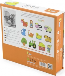 The blocks feature various farm shapes like animals, tractor, barn, and more, encouraging creative play and storytelling.