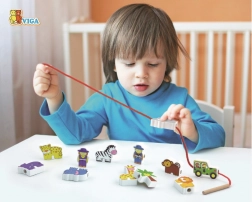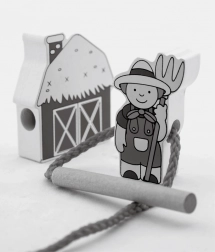 VIGA Wooden Threading Farmer Blocks are designed to captivate any child. This set contains 12 colorful blocks with farm motifs that your child can thread together using the included lace. Different shapes are available, such as cow, duck, cat, hen, dog, horse, sheep, farmer and his wife, tractor, barn, and apple tree.