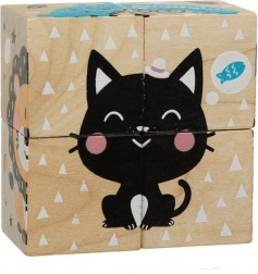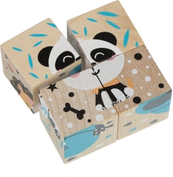 The wooden stacking blocks Cheerful Animals allow children to arrange up to six different pictures with cheerful animals. Each of the four blocks is carefully crafted from environmentally grown maple and beech and painted with safe, water-based colors. Key features:
