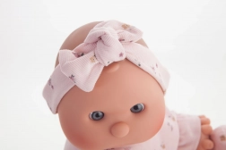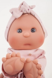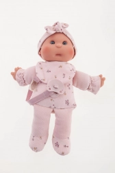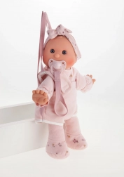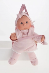 This handcrafted Spanish doll delights with its softness, quality, and focus on child safety. The soft fabric body is cuddly, while the head and limbs made from high-quality softened vinyl look realistic and are easy to maintain. Thanks to the magnetic pacifier, children can enjoy many authentic play scenarios with the doll.
