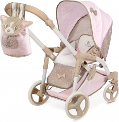 This charming doll stroller in pink–beige tones brings a great blend of design and functionality. Thanks to the adjustable bassinet that easily transforms into a sport seat, kids enjoy more realistic play. It also includes a carry bag for the doll with soft velvet DIDI embroidery and a practical wind flap.