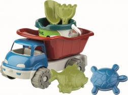 Androni Sand Set, made from recycled plastics, offers fun for young children. It includes a toy car, bucket, spade, rake, and two molds with a sea theme, ideal for sand or beach play.