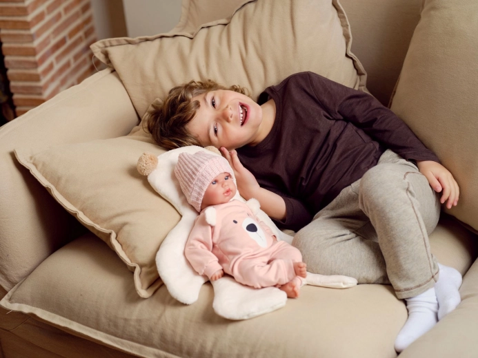 The realistic Llorens New Born doll brings children gentle care and the joy of pretend play. The soft fabric body is pleasant for cuddling, and the realistic facial details and sounds add authenticity to play. When you press the chest, the doll says “mama”, “papa” and cries, supporting the development of empathy and caregiving skills.