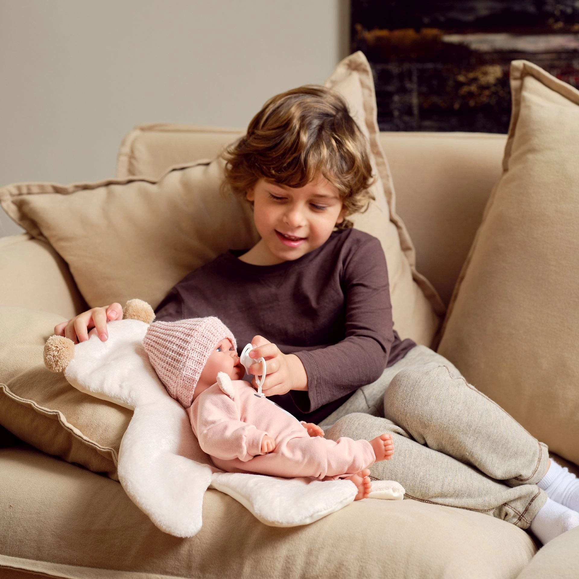 The fabric body is gentle and lightweight, ideal for hugging and everyday play. This makes the doll pleasant even for younger children.