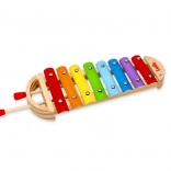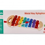 The xylophone includes eight metal keys in bright colors, allowing children to experiment with different tones and melodies.