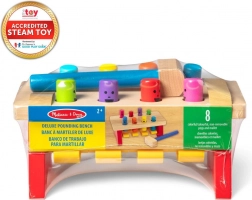 This wooden pound-a-peg offers timeless play: kids gently hammer vibrant pegs into the bench with a mallet and push them out from the other side. The sturdy wooden build and smooth edges ensure safe play, while bold colors support visual development.