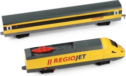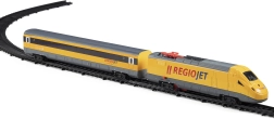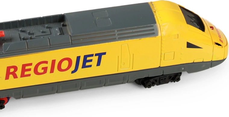 The model train RegioJet is carefully designed with attention to detail, including authentic colors and markings.