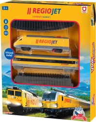 The model train RegioJet from Student Agency is an ideal choice for all railway enthusiasts. With this original set, which includes a yellow locomotive and a yellow wagon, you can embark on unforgettable adventures. The set includes 12 curved and 6 straight tracks, allowing you to create a track layout up to 147 x 121 cm. The tracks can be easily arranged to form two circuits for realistic operation.