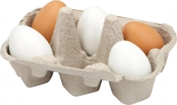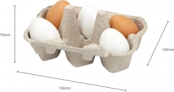 Six wooden eggs in a cardboard carton look just like a real pack. Perfect for a play kitchen and market play.
