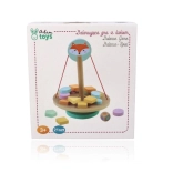 A fun and educational wooden balancing game with a cute fox theme helps children aged 3+ develop fine motor skills, coordination, and patience. Colorful geometric shapes are stacked on the base and kids try to keep the whole structure in balance – ideal for solo play or family time. CE certified.