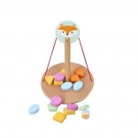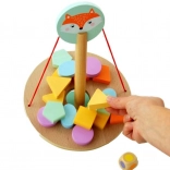 This wooden balancing game with a fox offers a great combination of fun and learning. Children stack various colorful shapes onto a base with a center post and try to keep the entire tower stable. While playing, they naturally train fine motor skills, hand–eye coordination, and logical thinking.