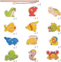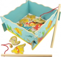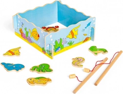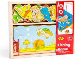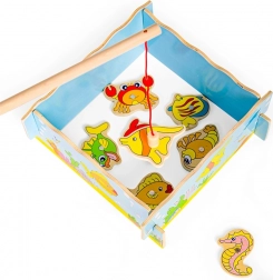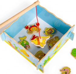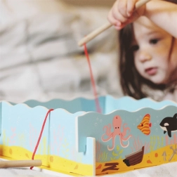 Discover the magic of fishing from the comfort of home. The Wooden Magnetic Fishing Game - Sea by BIGJIGS TOYS features a colorful cast of sea creatures, a sturdy wooden aquarium, and two rods for solo or cooperative play. Every catch supports precise movements and concentration — ideal for developing preschoolers' skills.