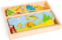 Grab a rod and head into the underwater world! This wooden magnetic game combines fun and learning — kids practice fine motor skills, hand–eye coordination, and patience. The set includes 12 sea creatures, 2 rods, and a sturdy wooden box shaped like an aquarium. An ideal toy for children aged 3+, made from quality wood with child-safe paints.