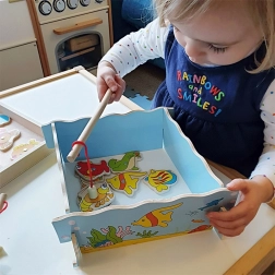 Catching fish with magnets supports fine motor skills, hand–eye coordination, and focus — in a playful way that keeps kids engaged.