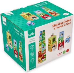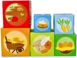 This colorful set of stacking blocks with farm motifs offers children endless play possibilities: from building a tall tower to inserting and sorting, to exploring numbers, fruit, and cute animals. Each block is illustrated to support visual perception, shape and quantity recognition, and early counting.