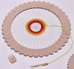Wooden circular frames with a toothed edge hold the warp securely, so patterns are precise and the process is comfortable even for beginners.