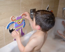 The creatures in this set are made from special foam that allows easy sticking. Just add a drop of water, and you can attach them not only to the tub but also to tiles, glass, or each other. This way, you can create new and exciting scenes directly in your bathroom.