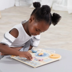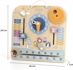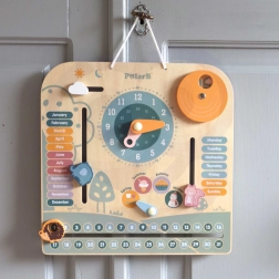 Wooden Calendar and Clock PolarB Montessori is a perfect combination of play and learning. It helps children learn to recognize time and days of the week, learn the seasons and weather with interactive elements.