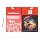 The spiral scratch-art pad with PAW PATROL – Marshall combines the magic of reveal pictures with practical stencils. Simply scratch gently with the wooden stylus and bright colors and detailed illustrations of favorite heroes appear beneath the black layer. Great for first drawing, patience, and concentration.