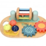 Teach children the basics of mechanics with colorful wheels that promote logical thinking.