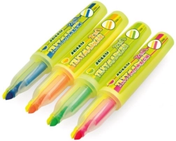 Choose from a colorful range and enjoy the set of 4 two-tone highlighters, which you can use for various purposes. Each highlighter is designed to provide bright and vivid colors for all types of paper. Their compact size and low weight make them easy to carry everywhere with you.