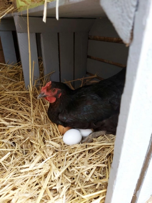 Thanks to the combination of brown and white eggs, children learn to recognize colors and count, which expands their knowledge.