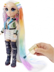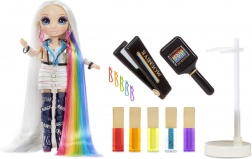 Rainbow High Hair Studio brings the complete hair-salon experience right home. The premium doll with long platinum hair and hidden rainbow strands is ready for bold hairstyles, coloring, and glittery embellishments. With articulated limbs, you can easily arrange her on the stand and show off her outfits and poses.