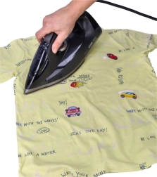 Simply position, cover, and press with an iron. Quickly personalize T-shirts, hoodies, and bags without special equipment.
