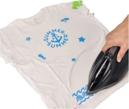 This large sheet of iron-on patches with summer and seaside motifs (anchors, starfish, waves, palms, ship wheels, and the SUMMER lettering) will transform your clothes in moments. Application is easy – just place the motif, iron it on, and you’re done. Great for personalizing T-shirts, kids’ fashion, and gifts.