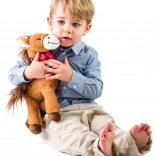 The adorable plush horse Ignác is a super-soft companion for babies from birth. It has a pleasant brown fur, safely embroidered details, and a stylish scarf. Easy to care for – it can be hand-washed at 30 °C. Ideal for cuddling, soothing, and imaginative play.