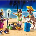 Playmobil Scooby-Doo! Adventure with the Witch Doctor brings an exciting experience of solving mysteries. Children can delve into the world of Scooby-Doo and Velma, who dress up in Hawaiian outfits to solve the ghost case. The set allows children to reveal the true identity of the witch doctor using a card that can be examined with the reader from the Mystery Machine or Haunted House.