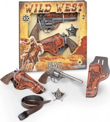 Discover authentic Wild West fun with the GONHER set – two metal cowboy revolvers with an 8-shot drum, complete with a stylish holster and a sheriff’s badge. Ideal for themed play, costumes, and little adventurers.