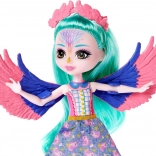 Introducing the doll Filia Finch from the Enchantimals series, accompanied by her cute parrot family. Filia has long turquoise hair and a colorful outfit including an original top and skirt with bird patterns. She wears pink shoes that beautifully match her elegant pink wings.