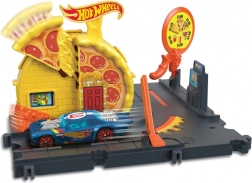 Build your own HOT WHEELS CITY metropolis and enjoy an action-packed ride, themed locations, and endless stories. Choose a pizzeria or a gas station with interactive elements, connect them with other tracks, and head out for high-speed races. Includes a Hot Wheels die-cast car and the option to connect with other sets for even more fun.