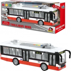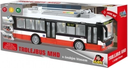 This detailed trolleybus gives kids an authentic taste of urban transport. The toy plays stop announcements in Czech (Main Station, City Theatre, Zoo) and features attractive light effects. With the friction drive, just push the trolleybus and it will roll forward.