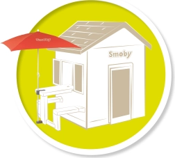 A parasol for protection from sun and rain, attached to the SMOBY cottage garden table.