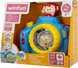 Camera with Popping Monkey is an amazing toy for children from 9 months, combining fun and learning. This playful camera with colorful lights and sounds is perfect for developing a child's sensory skills.