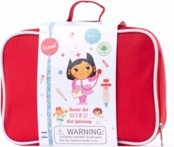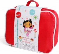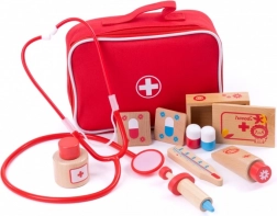 This doctor's set includes all essential accessories, securely packed in a robust, zip-closure red suitcase.