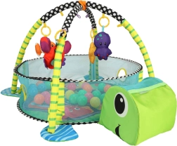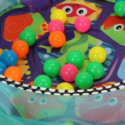 - Pool with net: The mat has an attached net that, when unfolded, creates a pool—perfect for play with balls and toys.