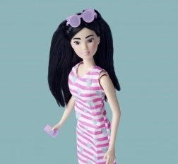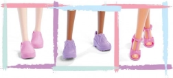 Pink and purple sneakers or sandals add flair to any outfit and underline the doll’s fashion style.