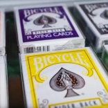 • 9 original BICYCLE decks in the following colors: brown, yellow, gray, orange, green, fuchsia, red, black, turquoise.