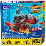 Build your own monster truck and show off daring jumps with the ramp! This HOT WHEELS Mega Bone Shaker Crush Course construction set includes 151 pieces to assemble a rugged car with a pull-back drive, a ramp, and accessories for action-packed stunt runs. Wide tires, a red-and-black body with flames and a skull, and the ability for the ornament to pop off on impact guarantee endless fun.