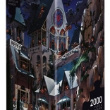 Enjoy hours of fun with a stylish puzzle by the cartoonist Loup. This large puzzle with a haunted castle motif offers 2000 pieces, comes in an unconventional triangular box, and includes a poster as a reference. The assembled image measures approximately 68 × 96 cm.