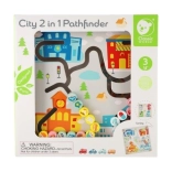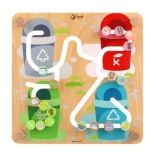 Discover the double-sided wooden 2-in-1 maze that connects the world of the city and waste sorting. Children slide the pieces along the tracks, learn about transportation and recycling while developing fine motor skills, logical thinking, and hand–eye coordination. Safe design with rounded corners, ideal from 3 years.