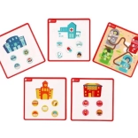 On the city side, children guide vehicles and characters to the hospital, fire station, or police station. They learn to understand traffic situations and practice spatial orientation and movement planning.